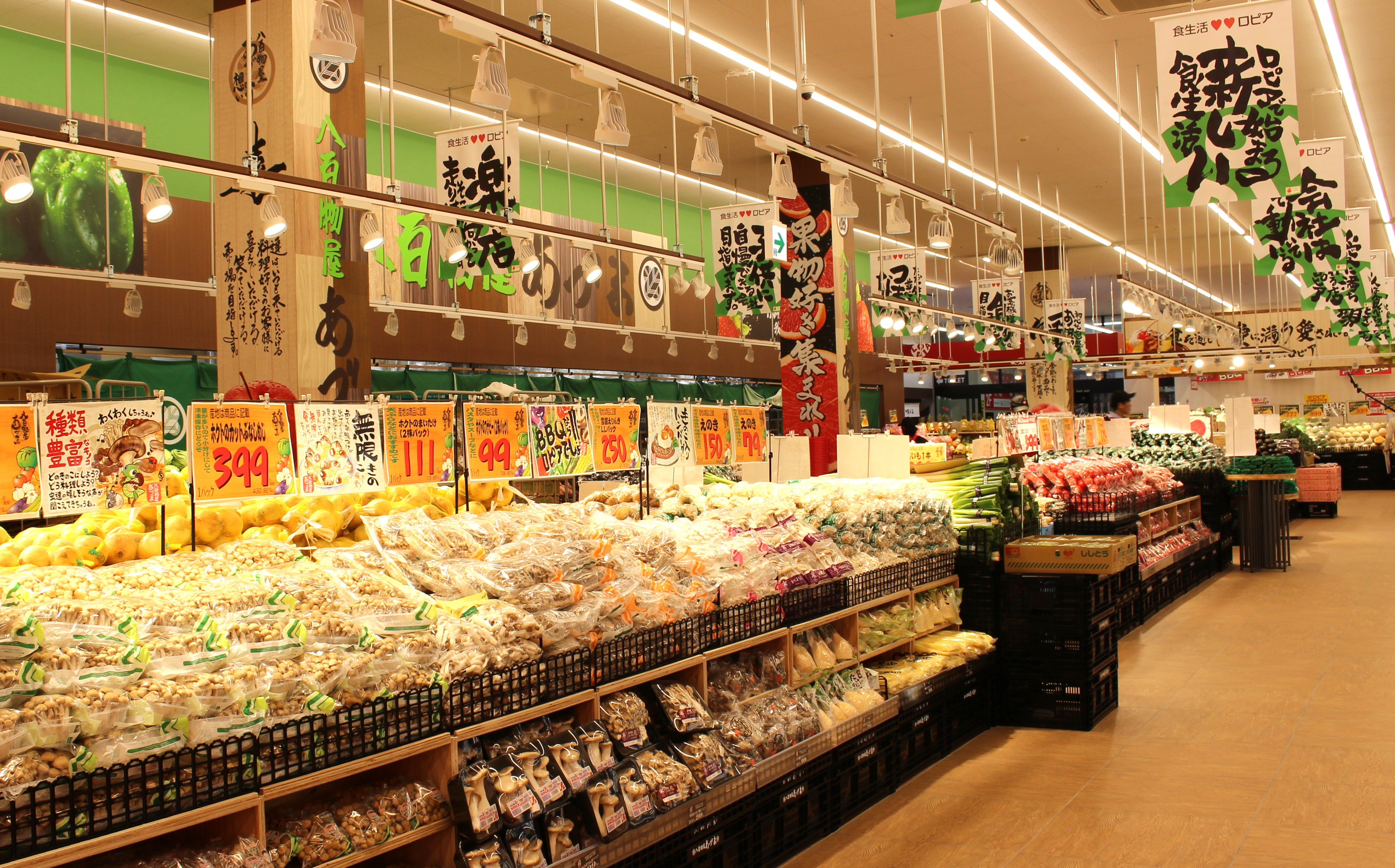 2024年12月、当社と食品スーパーマーケット「食生活♥♥(ラブラブ)ロピア」を運営する株式会社ロピアは、食品事業拡大を目的とした業務提携を発表しました。ロピアからの営業指導やオリジナル商品の提供を受け、既存のロピアと同様に精肉・青果・鮮魚・惣菜・食品の5部門による事業部制を採用し、チーフ自らが買い付けた新鮮な食材やオリジナル惣菜を、お求めになりやすい価格でご提供いたします。